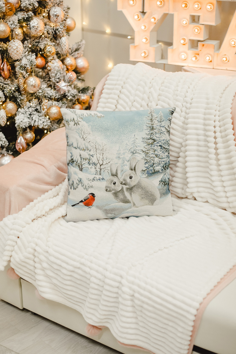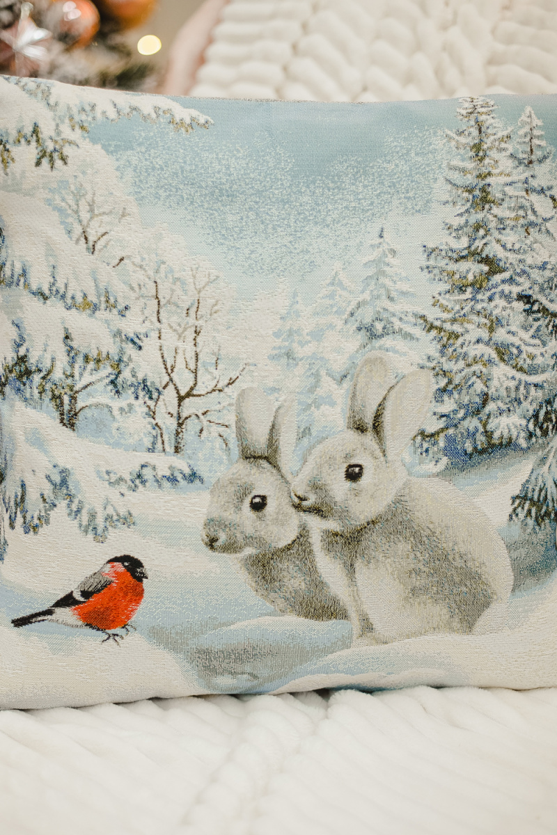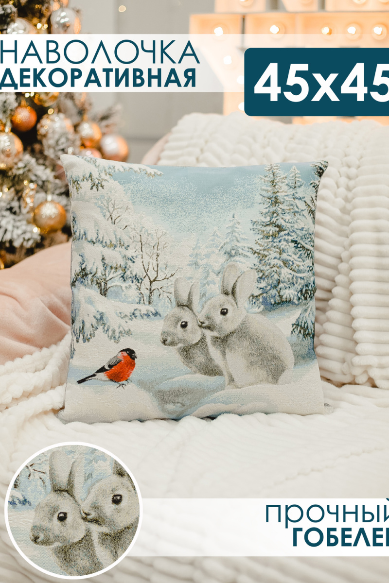 Наволочка 45х45 Снегирь и зайчики