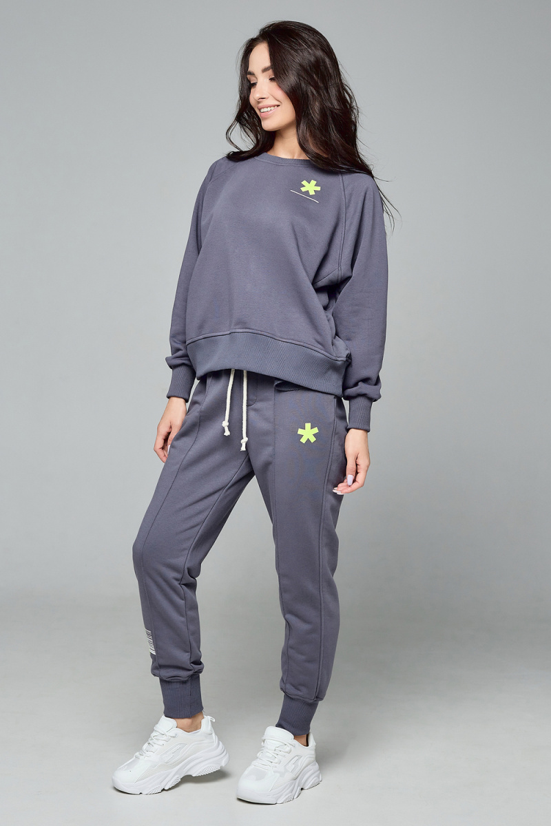 Костюм оверсайз, состоящий из свитшота и брюк, станет настоящей находкой для девушек, ценящих стиль и комфорт в своих нарядах.Модный оверсайз фасон данной модели прекрасно совмещается с различными стилями, добавляя изюминку в ваш гардероб. Удобные штаны и дизайнерская кофта с принтом подарят вам уют как в помещении, так и на улице. Этот свежий и актуальный наряд подходит как для активного отдыха на свежем воздухе осенью и зимой, так и для повседневного ношения. Высокое качество производства обеспечивает комфортную посадку и свободу движений на протяжении всего дня.